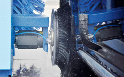 進口意大利塑玻絲輪刷,根據(jù)光電開關感應判斷車身位置,輪刷啟動至輪轂位置,開始清洗,正反旋轉(zhuǎn)刷洗輪轂,電腦洗車機全程電腦全自動控制輪刷伸縮。